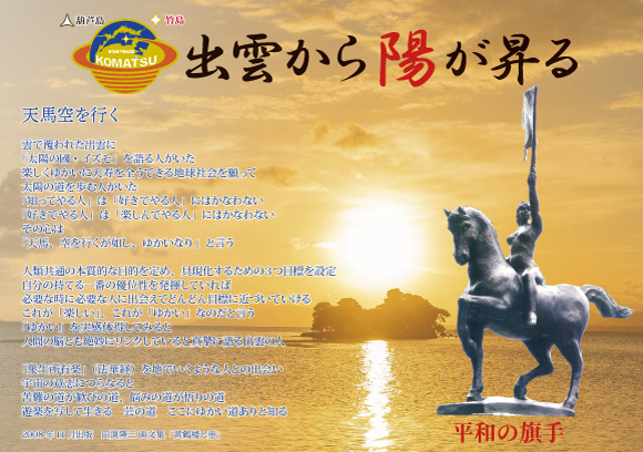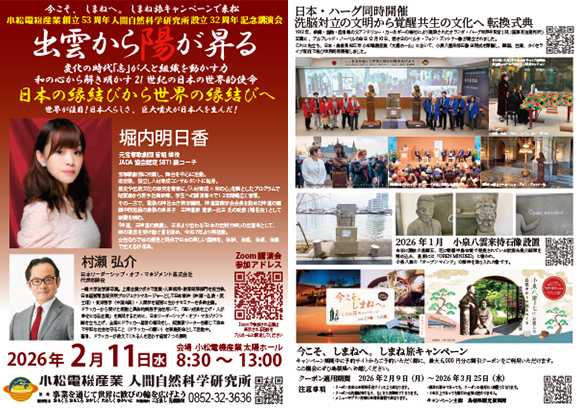 「出雲から平和の事業化に取り組む」と題し、人間自然科学研究所と小松電機産業のあゆみからベルタ・フォン・ズットナー像全国5箇所同時建立など構想を発表。